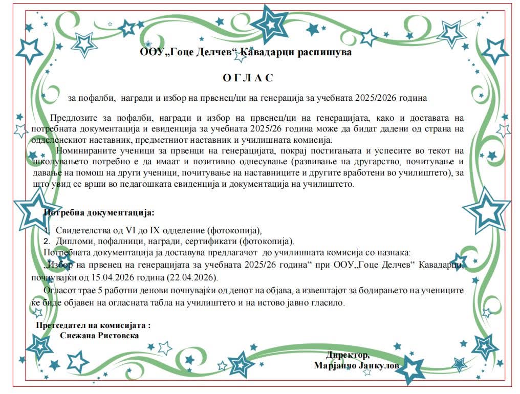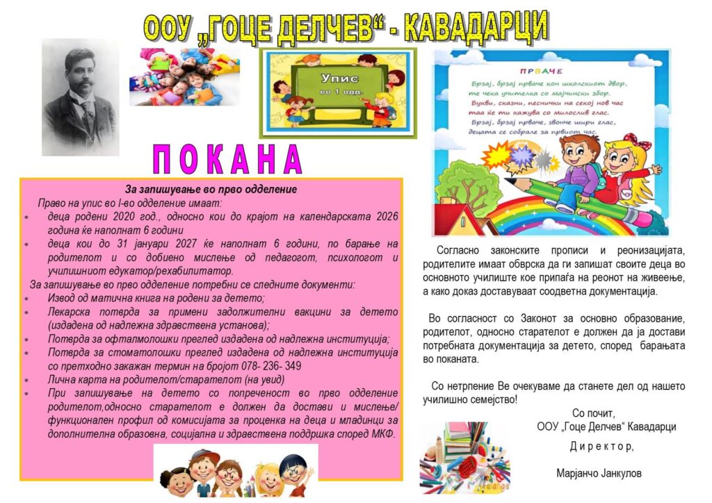 Почитувани родители на идните првачиња,